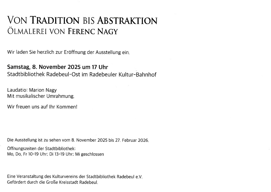Die Vernissage findet am 08.11.2025 um 17.00 Uhr statt
